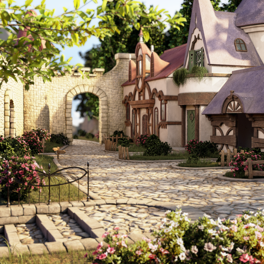 Modeled in Maya and ZBrush, textured in substance painter, and rendered in V-ray. The foliage are Speed Tree assets. The cobble stone and the wall are tiling textures that I made using a combination of ZBrush and Substance Designer.